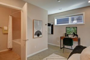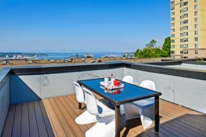 Drama. Excitement. Design that’s breathtaking and inviting with something new at each level! So much character with sensuous experiences of sweeping views from two rooftop decks and an abundance of light throughout. Dazzling city, water, and mountain views to the west and east provide a feast for the eyes and the perfect backdrop for rooftop parties and dinners, with a gas grill that stays. Compelling, boldly designed, and as functional as it is comfortable and stylish. High ceilings, heated concrete floors, an inspired staircase, a glass garage door off the living room, plus a dynamic red kitchen add energy, warmth, and a pop of color. Three bedrooms, each with its own bath (one with a separate entrance), off-street parking, bike storage, fenced garden patio, and hobby shed, plus a location close to parks, light rail, shopping, cafes & Beacon Hill International Elementary.